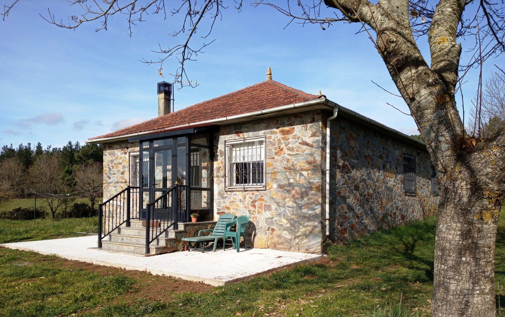Casa y finca a 5 minutos de Chantada, en un entorno tranquilo y rural, rodeada de bosque y con vistas al valle del río Asma. Situada en una gran finca cerrada, de 4000 metros cuadrados, ideal para tener huerto propio. La vivienda es de planta baja, con tres dormitorios amueblados, cuarto de baño, cocina (de butano y de leña) y un gran salón comedor. Además tiene dos construcciones anexas en la finca, garaje y establos. Tiene calefacción de gasoil y agua de pozo.